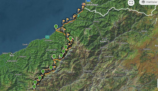 Fındıklı - Sarp arası yoldan olduğu için sadece rota izi oluşturup bıraktık.Toplam rota 211 km..